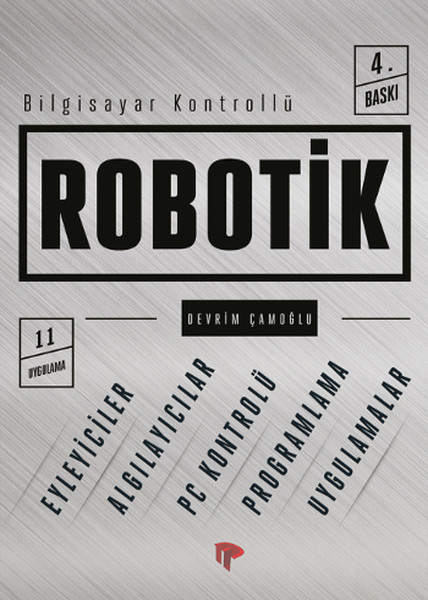 Robotik Nedir, Robotigin Tanimi ve Ontolojisi, Robotikte Mekanik Yapi ve Eksenler, Robotikte Eyleyiciler (Hareket Tahrik Sistemleri), Robotikte Algilayicilar, Robotikte Kontrol Yöntemleri, Bilgisayar Port Donanimi, Yazilimlar ve Yazilimcilik, Bilgisayar ile Kontrol için Temel Elektronik, Bilgisayar Destekli Robotik Kontrol Uygulamalari, Paralel Port Çikis (OutPut) Devresi, Bir Eksenli Kartezyen Robot, Iki Eksenli Mafsalli Robot, Yön Kontrollü Tekerlekli Robot, Pnömatik Piston Kontrolu, Air Muscle ile Antropomorfik Kol, 5 Eksenli Robot Kol Uygulamasi, Adim Motor Kontrolu ve Scara Robot Tasarimi, Paralel Port Giris (InPut) Devresi, Devre Semalari, Visual Basic kod örnekleri, Dosyalar ve Tasarimlar