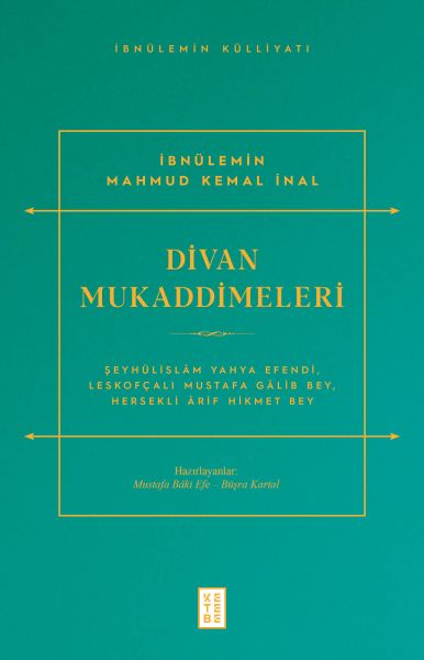 Son devir Osmanlı devlet adamları, şairleri, musikişinasları ve hattatları u¨zerine biyografileri ve tarih bilgisiyle tanınmış bir âlim olan İbnu¨lemin Mahmud Kemal İnal, nadir ve değerli yazmaların baskılarını hazırlamak için kurulan Âsâr-ı Mu¨fîde Ku¨tu¨phanesi heyetinin en verimli u¨yesi olarak divan şiirinin u¨ç seçkin simasının divanlarının neşri işini u¨stlenmişti. Elinizdeki çalışma, İbnu¨lemin Mahmud Kemal İnal'ın Âsâr-ı Mu¨fîde Ku¨tu¨phanesi Yayınları arasında neşredilen Şeyhu¨lislâm Yahya Efendi, Leskofçalı Gâlib ve Hersekli Ârif Hikmet Divanları için yazdığı mukaddimelerden oluşmaktadır. İbnu¨lemin, bu divanları neşre hazırlarken yazmış olduğu mukaddimelerinde seleflerine ve haleflerine muhabbet saikiyle hareket etmiştir. O, bu¨tu¨n bir millet için birer “manevi ecdat” olan seleflerimizin hallerini ve eserlerini tetkik etmenin onları ihya etmek demek olduğunu söylemiş, onları unutmanın ise vatan ve millet sevgisiyle bağdaştırılamayacağını vurgulamıştır. İbnu¨lemin'e göre, insaniyetle kaim olduğu için marifeti yu¨celtmeli ve manevi ecdadımızın eserlerini okuyup geçmişimize sahip çıkmalıyız.